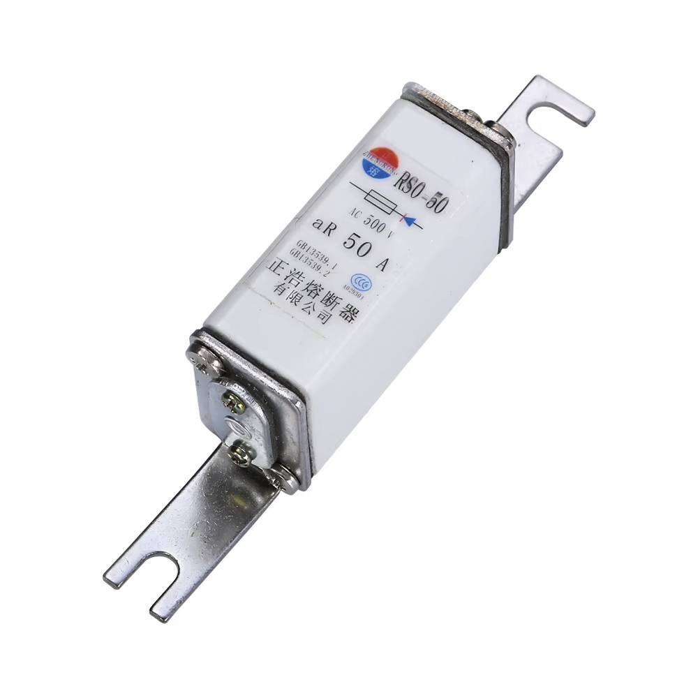 Осигурувачот RS0/RS3-50 500V е брз осигурувач со завртки со квадратна цевка, со номинален напон од 500V и капацитет на прекин од 50ка, кој има добра безбедносна гаранција.